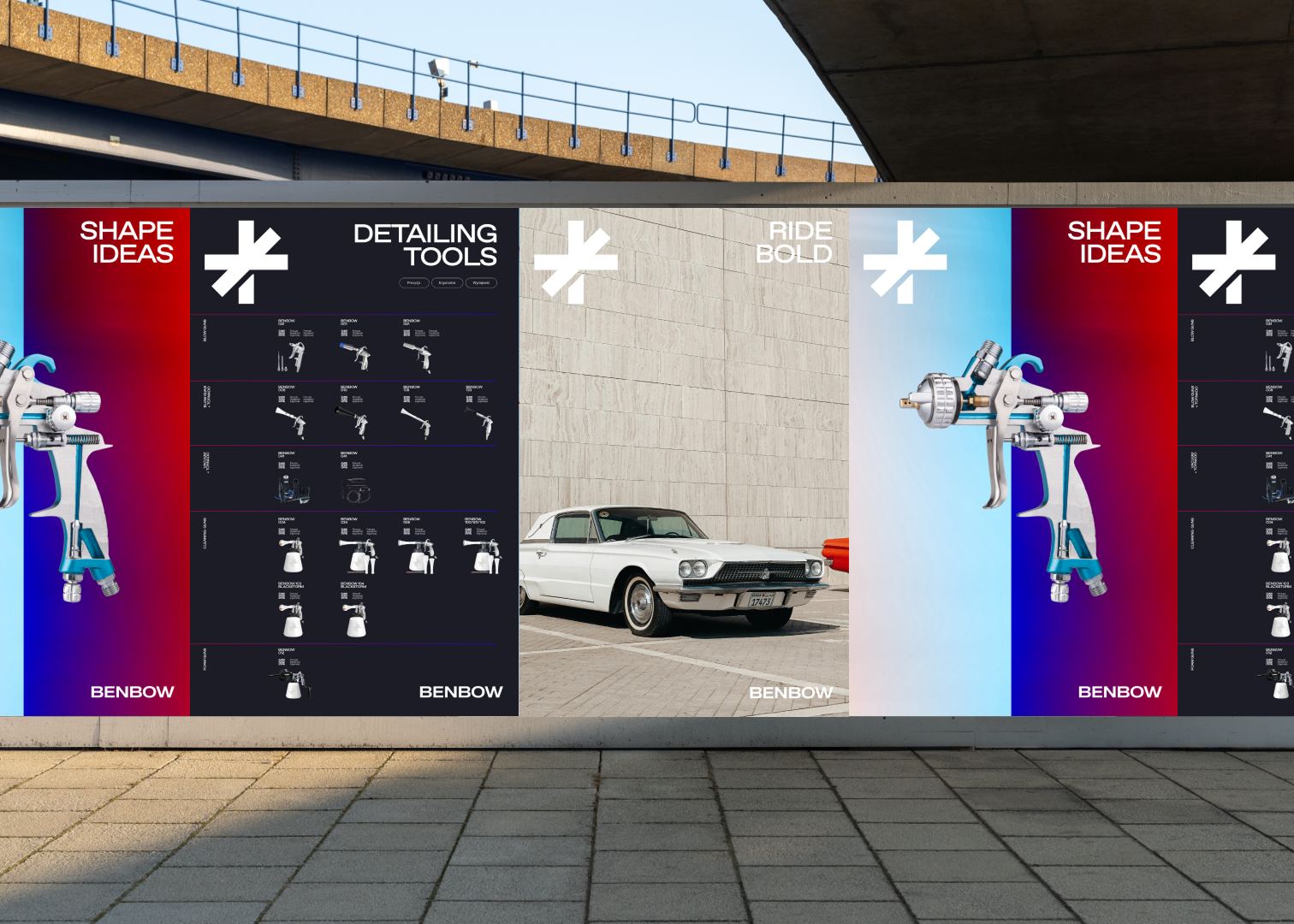 Benbow dynamicznie rozwija ofertę, wchodzi w nowe partnerstwa i buduje coraz silniejszą pozycję na rynku narzędzi do detailingu i lakienictwa, akcesoriów specjalistycznych i rozwiązań dla branż auto-moto. Dotychczasowa identyfikacja nie w pełni oddawała skalę i kierunek rozwoju marki. Obecny system identyfikacji jest modularny, elastyczny i łatwy do wdrożenia w różnych środowiskach (e-commerce, social media, katalogi, instrukcje, materiały POS).